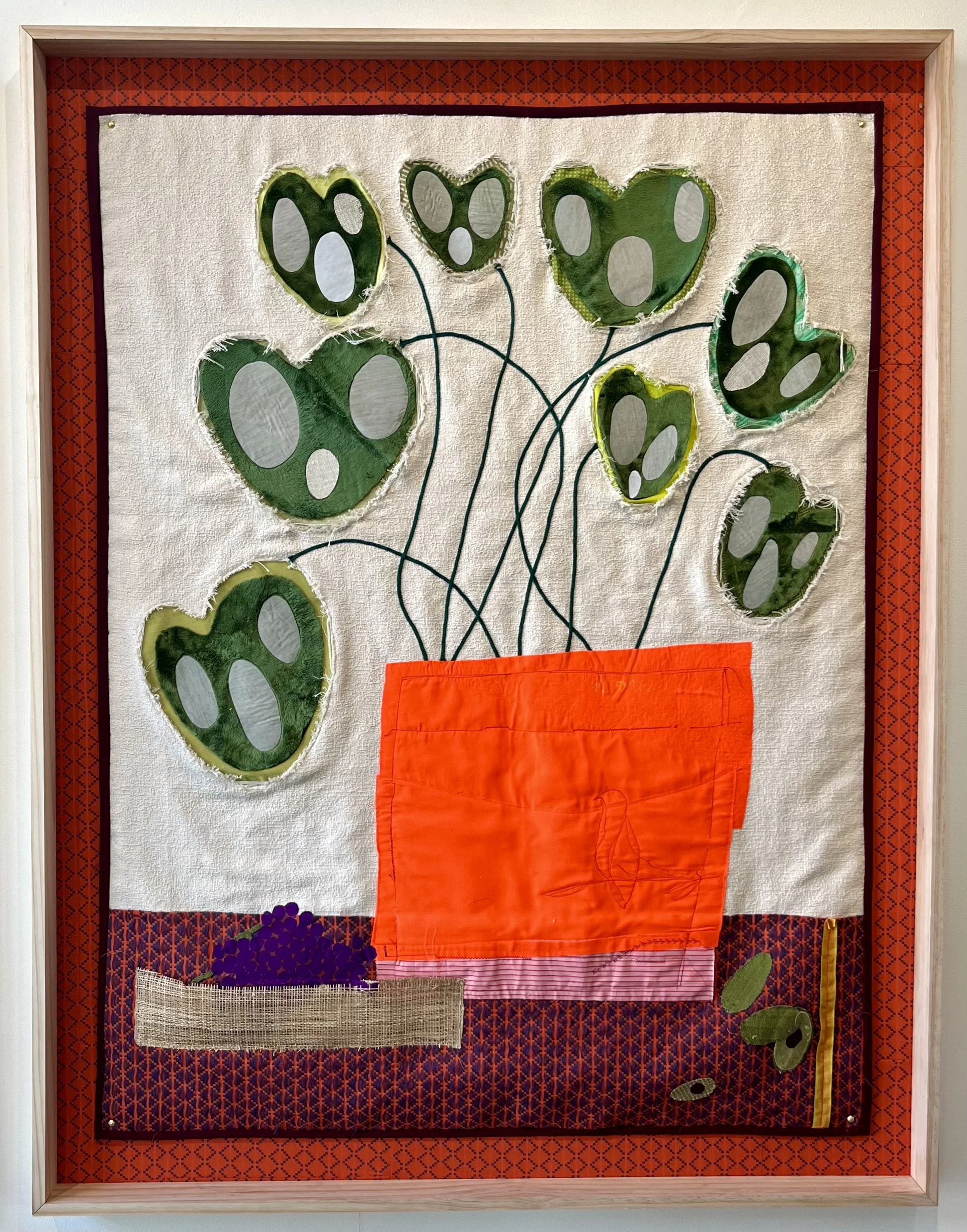 After a decade-long hiatus from formal studio practice to study the art of psychotherapy and to embrace motherhood, today, her quilts serve as a journey back to her roots. Her tapestries begin as intuitive expressions of her spiritual studies, transforming both personal and collective experiences into tactile narratives. Often portrait-like, her contemporary quilts use color, texture, and form to explore the themes she has spent years witnessing behind her desk as a therapist—mindfulness, impermanence, relationships, and personal agency.